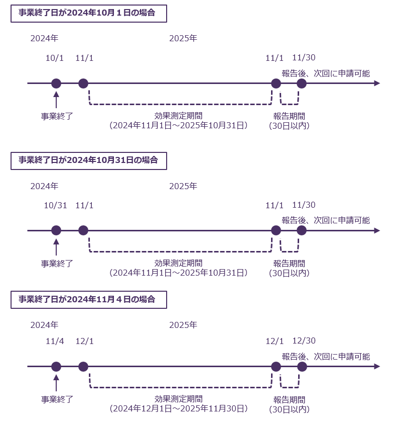 補助事業者は、事業実施期間終了日の属する月の翌月から1年間の事業効果等の状況について、 交付規程第29条に定める「事業効果および賃金引上げ等状況報告」を、補助事業実施後、補助金事務局が 指定する期限までに必ず行うことが必要です。 提出していない事業者には補助金申請に際し、制限が課される場合があります。